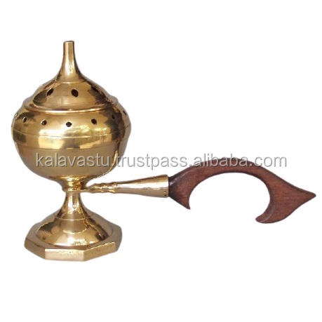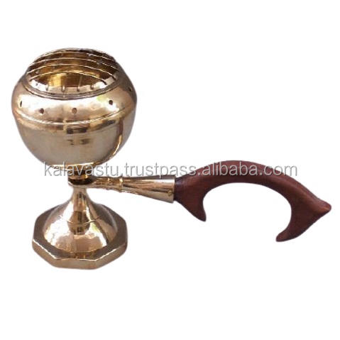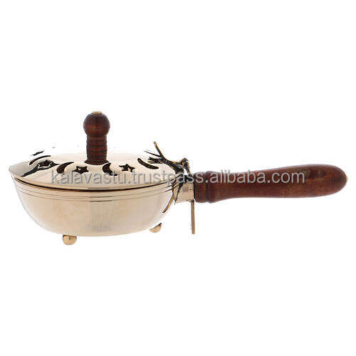 LOBAAN Bakhoor Burner Handcrafted Brass Incense Resin Holder with Wooden Handle Aromatherapy Diffuser for Seed Material Aromas