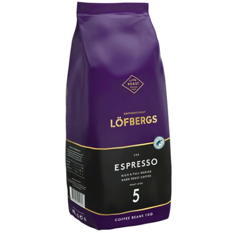 LOFBERGS 1KG Roasted Espresso Beans Mellow Taste Packaged in a Bag
