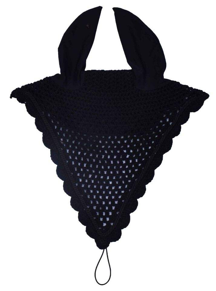 LONG TIE DOWN HORSE FLY VEIL EAR BONNET COTTON NET HOOD CROCHET HANDMADE COLOUR BLACK