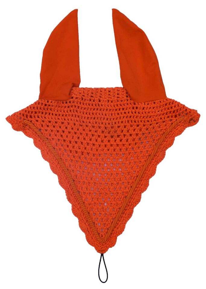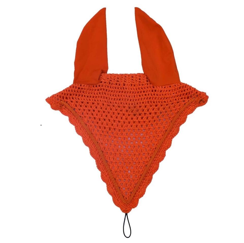 LONG TIE DOWN HORSE FLY VEIL EAR BONNET COTTON NET HOOD CROCHET HANDMADE COLOUR ORANGE
