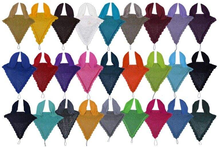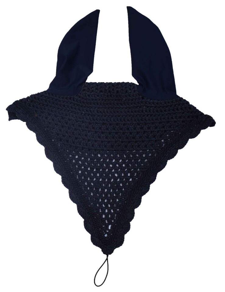 LONG TIE DOWN HORSE FLY VEIL EAR BONNET COTTON NET HOOD CROCHET HANDMADE COLOUR NAVY