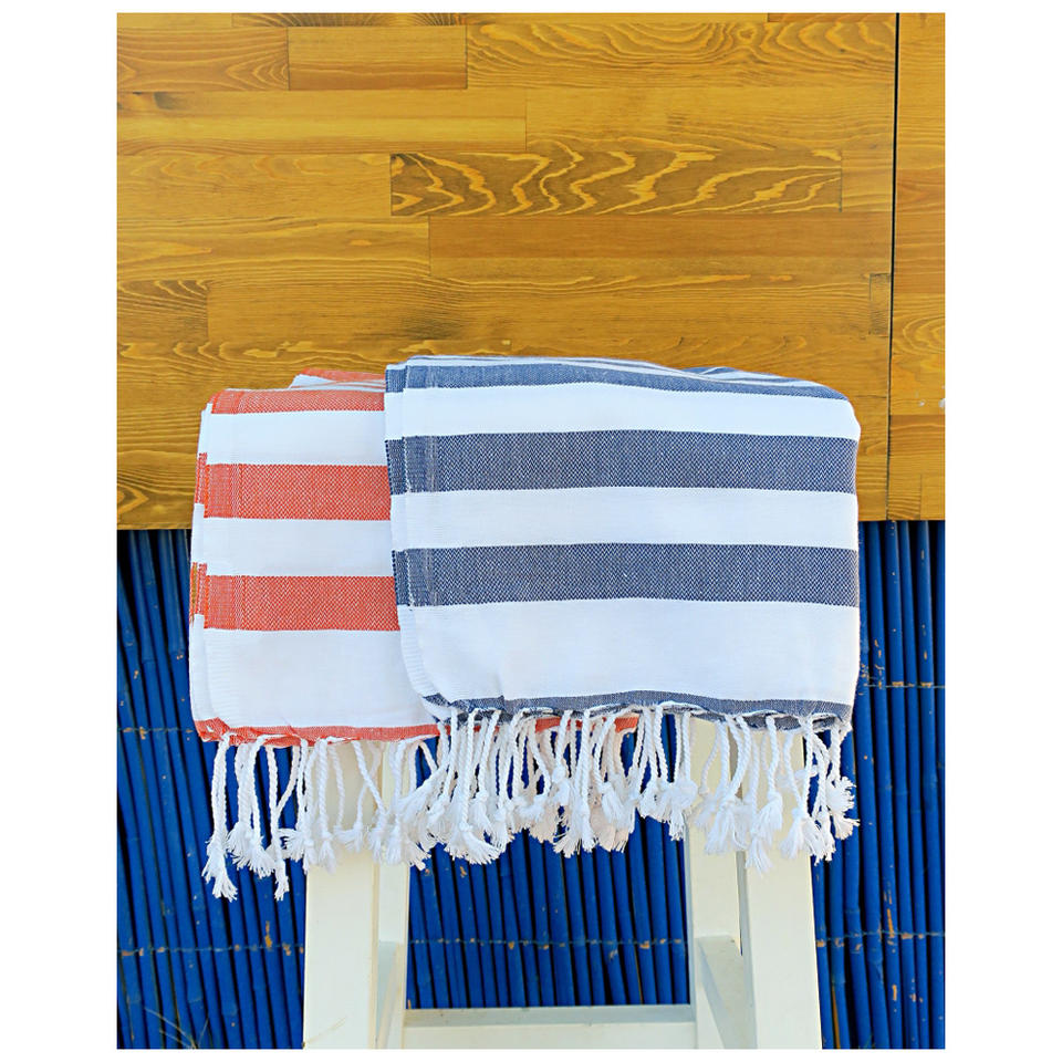 LORIN 100% Cotton Turkish Hammam Peshtemal Beach Towel Orange Striped Absorbent Summer Feature