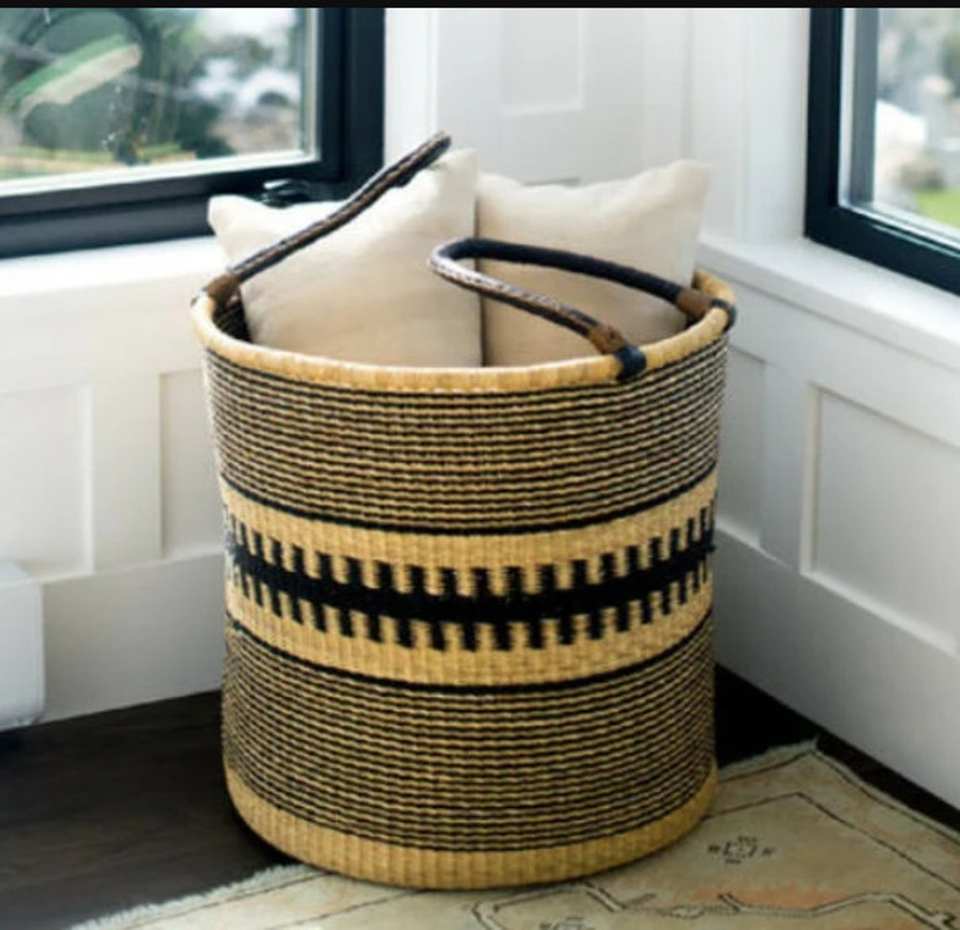 LOVELY Perfect High Quality Handmade Round Laundry Hamper Storage Basket Handwoven Wicker Bamboo Seagrass Basket Colorful Color