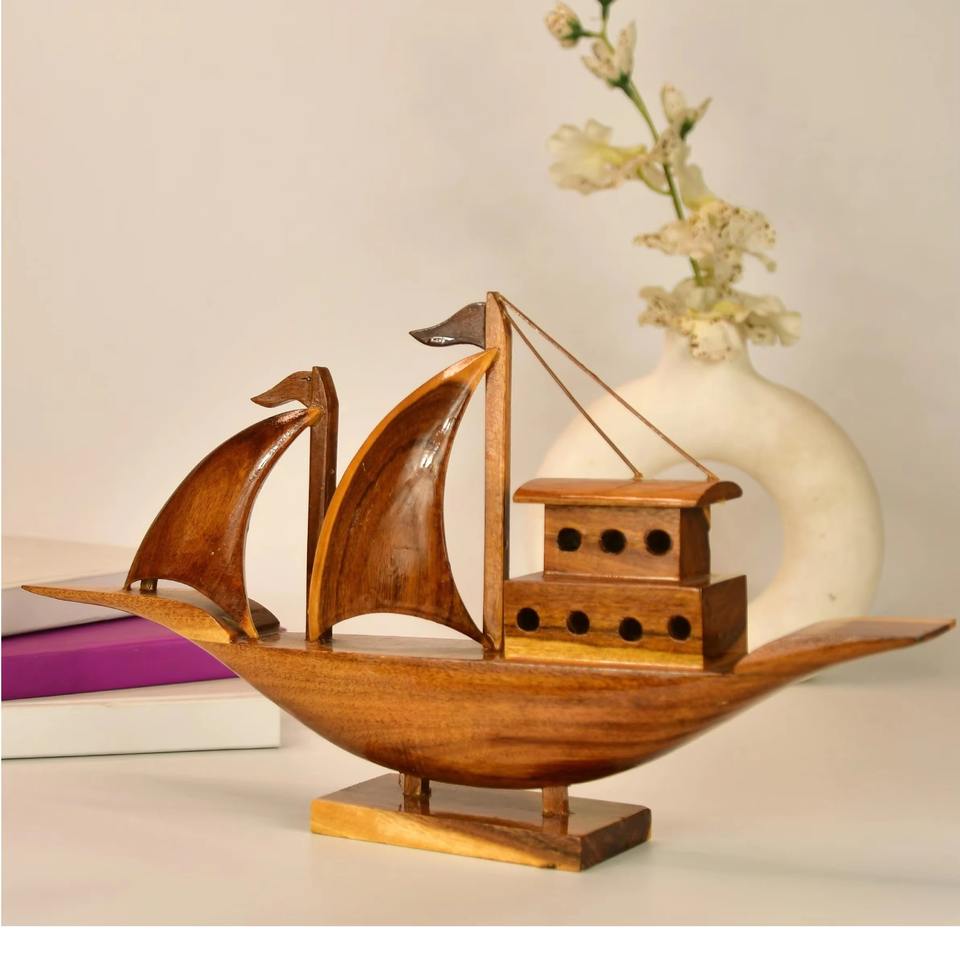 LOW MOQ Wooden Boat Decoration Ship Sculpture Nautical Showpiece by INDIAN SUPPLIER /WHOLESALER
