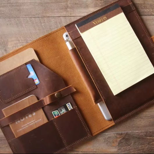 LP-0249 Genuine Leather Factory Office Organizer A4 Leather Portfolio File Folder Bag with Zipper Document Case