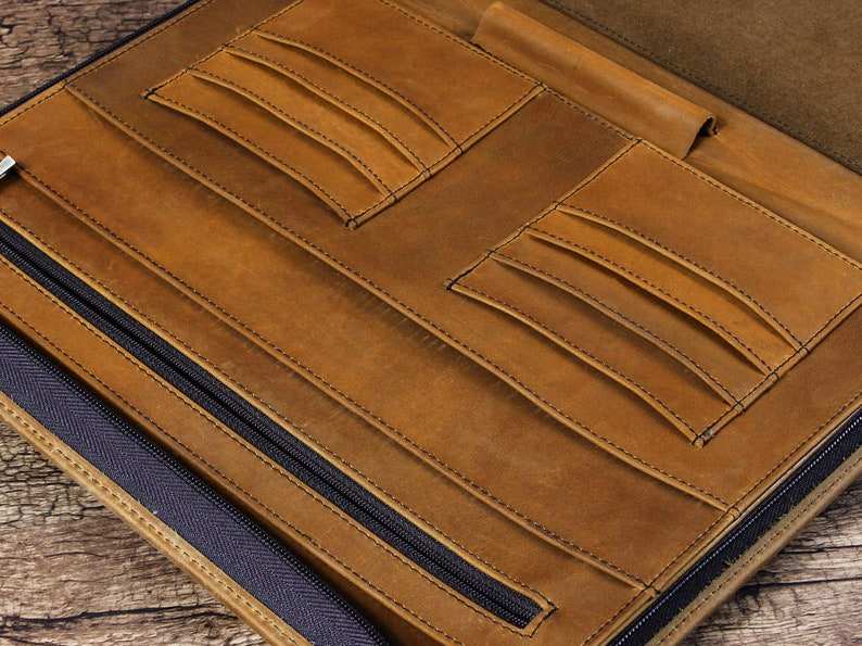 LPF-0108 Genuine Leather Pad-Folio Vintage Durable Folder Binder Storage Clipboard A4 Size Document Holder