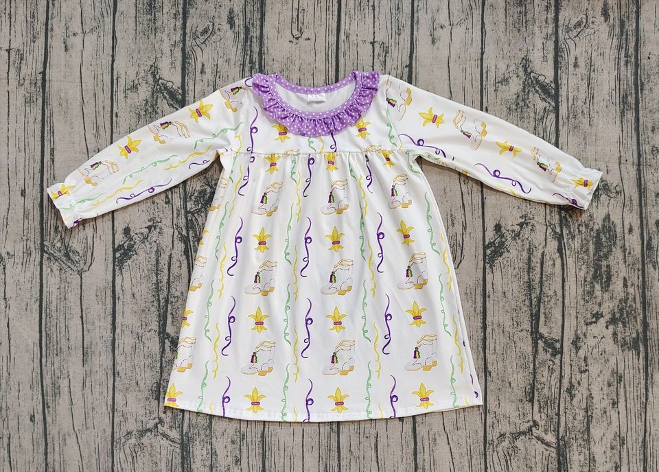 LR2042 rts Infant baby Purple yellow Green pattern print kids wholesale romper mardi gras jumpsuit child cute sleeper set