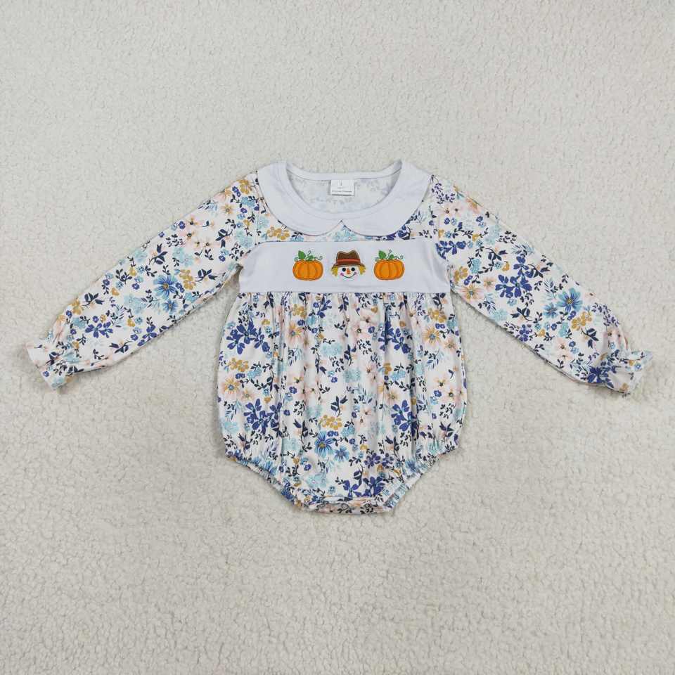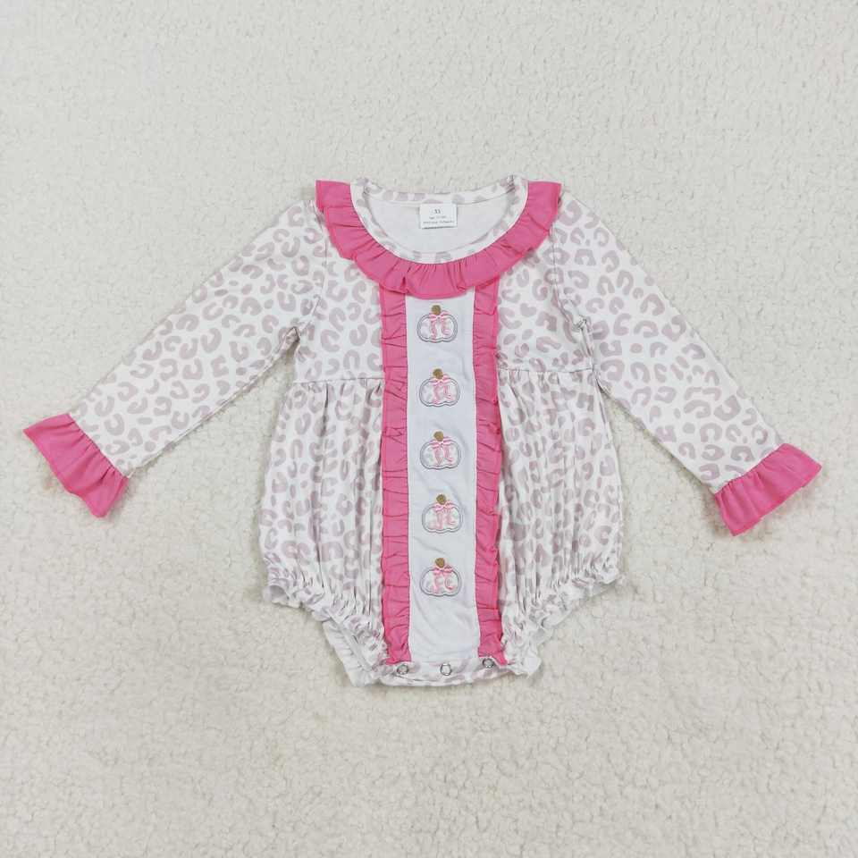 LR2216 RTS Infant Pink bows spooky smock Jumpsuit Long Sleeve Wholesale Romper for Kid Baby boy halloween romper