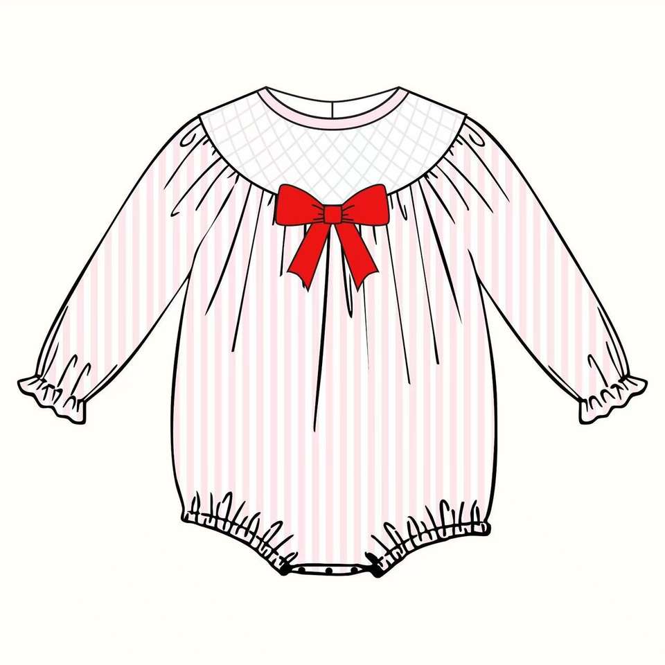 LR2773 Custom Infant baby pink white stripe kids girl wholesale romper long sleeve jumpsuit child sleeper set