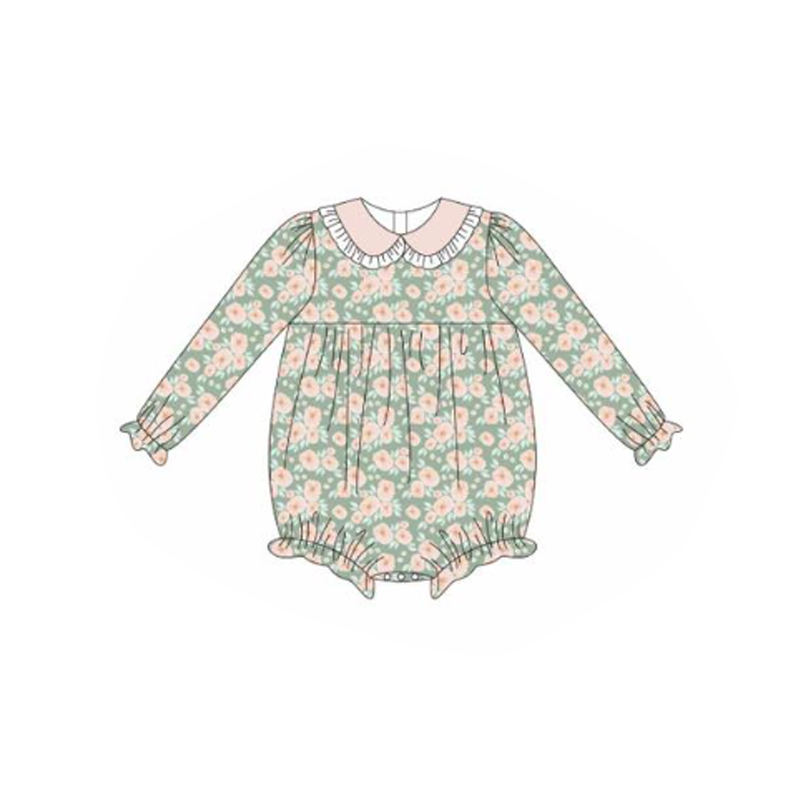 LR2822 CUSTOM Infant baby pink flowers print kids wholesale romper long sleeve jumpsuit child set