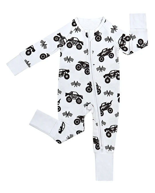 LR2856 CUSTOM Infant baby black cars print kids wholesale romper long sleeve jumpsuit girl bubble