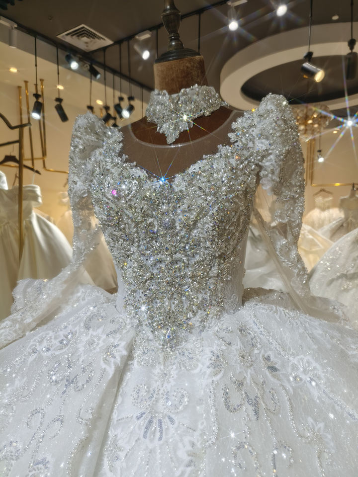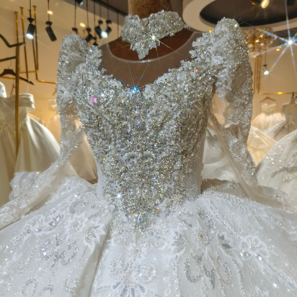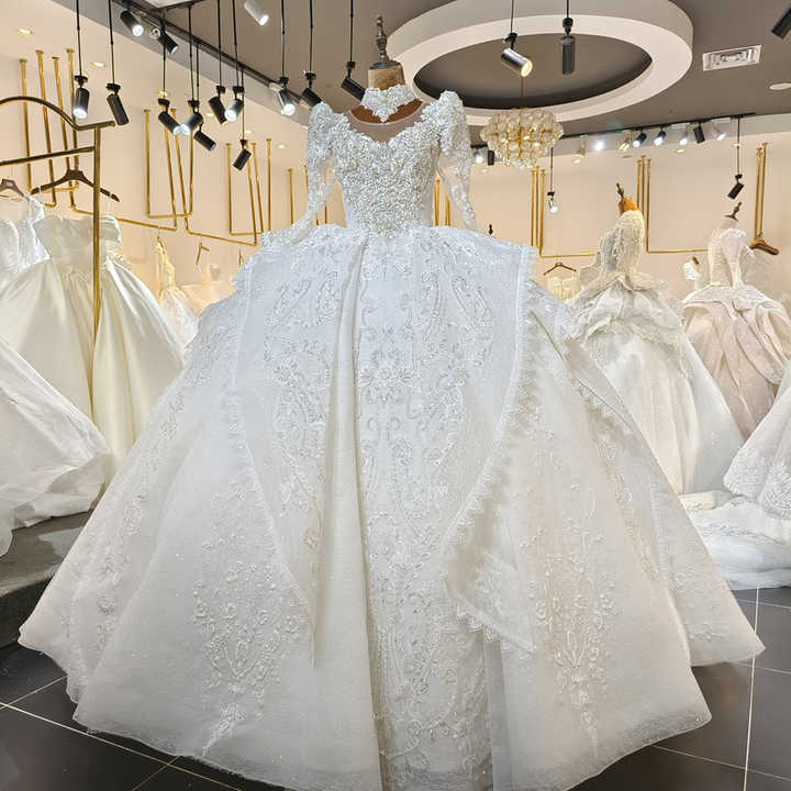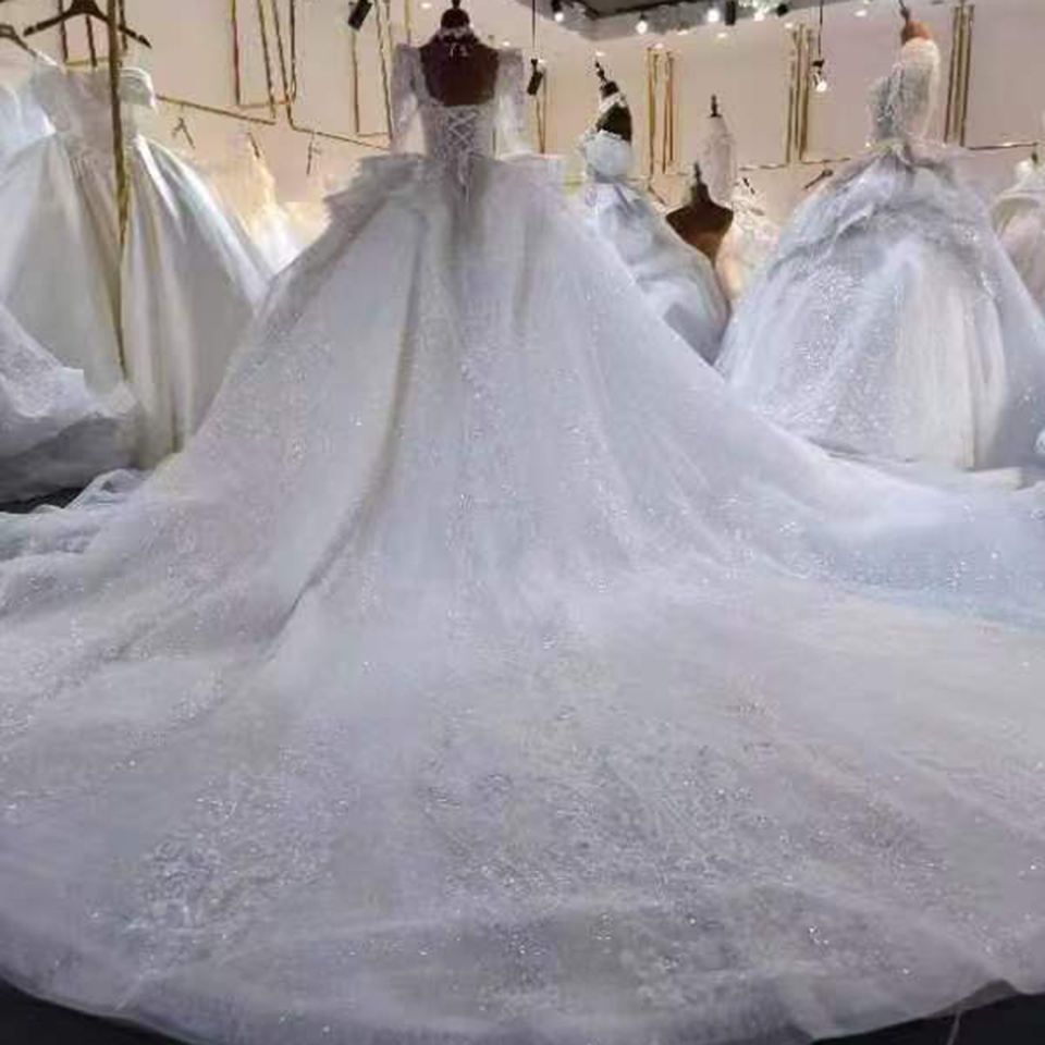 LSML025 Vintage Glitter Regular Sleeve Pleated Mermaid Trumpet Backless Wedding Dress Chapel Train Modern Appliques for