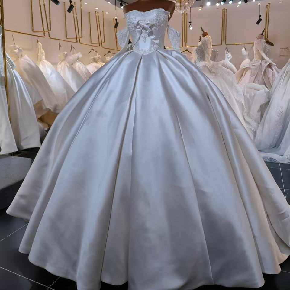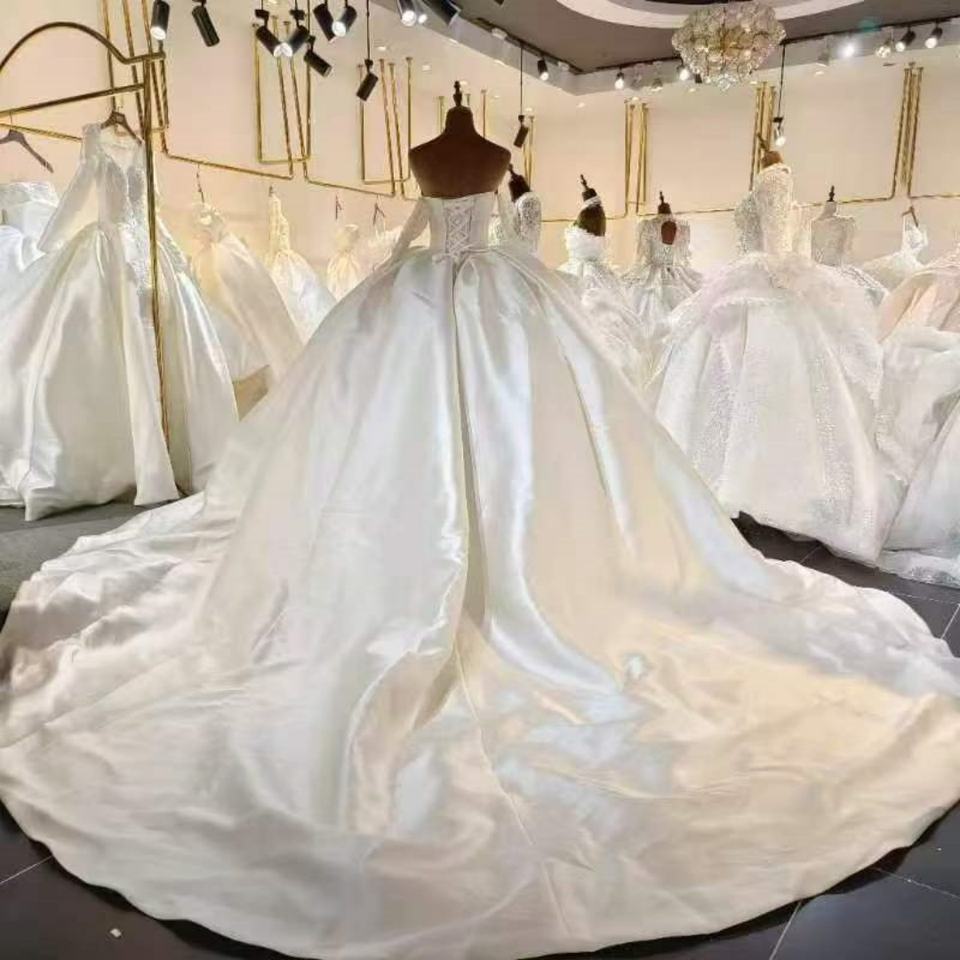 LSML028 Modern Satin Wedding Dress Elegant Bridal Gown Appliques Sequined Beading Floor-Length Mermaid/Trumpet Chapel Train