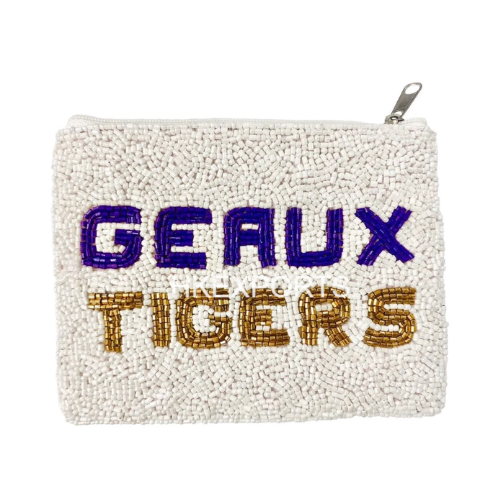 LSU Geaux Tigers Beaded Coin Purse - Purple & Gold Tiger Coin Pouch for LSU Fans
