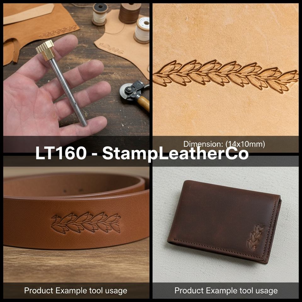 LT160 Leather Stamp Leafy Wheat Garland Design 14x10mm (5/9\" X 2/5\") for Leather Crafts