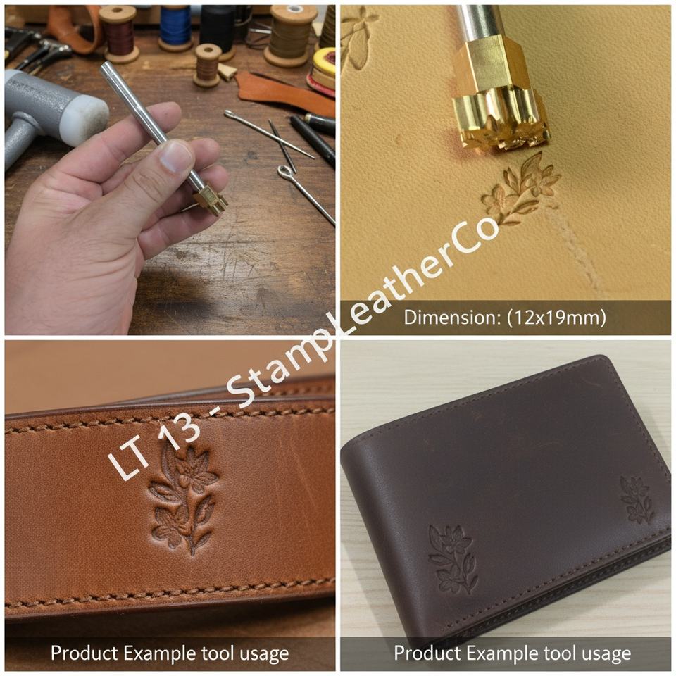 LT713 Leather Stamp Petite Blossom Flower Design 12x19mm (7/15\" X 3/4\") for Crafts