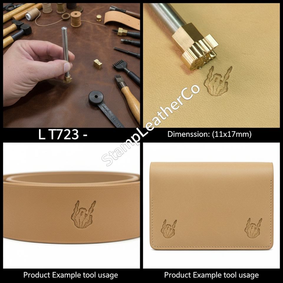 LT723 Leather Stamp Skull Devil Horns Hand Skull Design 11x17mm (7/16\" X 2/3\") for Crafts