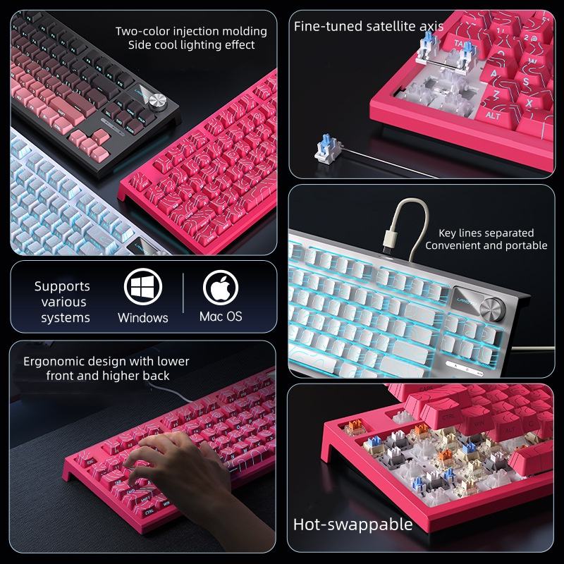 LT84 Isometric line hot-swappable mechanical keyboard for gaming office side-mounted wired keyboard with engraved patterns