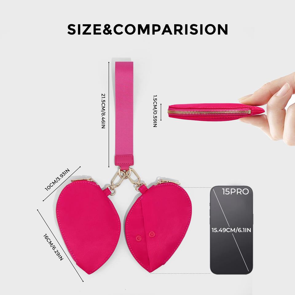 LU LU Heart Shape Dual Zipper Pouch Wristlet Bag Luxury Mini Women's Coin Purse Metal Zipper Portable Girl's Keychain Handbag