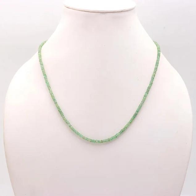 LUSTRE Genuine Quality 925 Sterling Silver Beaded Necklace Custom Personalized 100% Natural Emerald Healing Crystals Gemstone