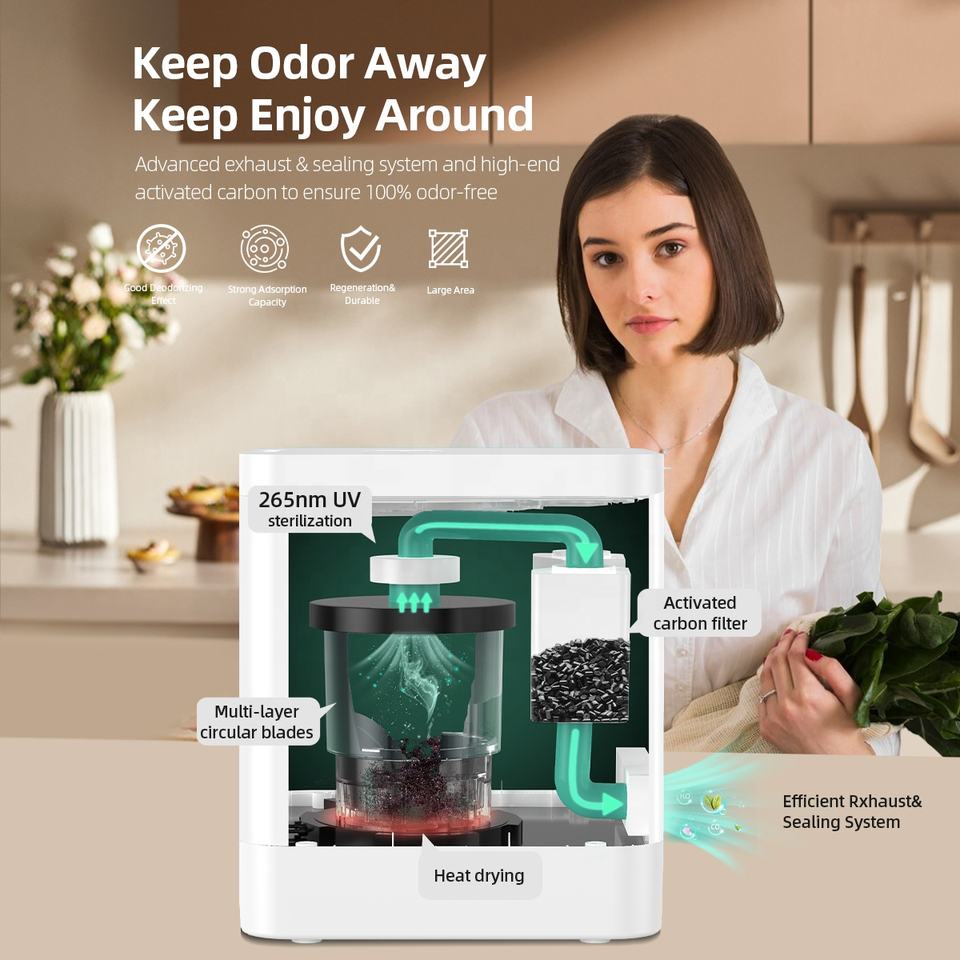 LUXFOND Electric Stainless Steel Food Waste Composting Machine with 3.3L/5.2L Capacity Odor-Free Household Compost System