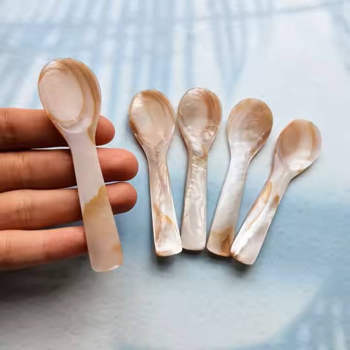 LUXURIOUS GOLD Lip Mother of Pearl Shell Spoon, Caviar Spoon Popular Perfect for Serving Expensive Caviar Size 10cm