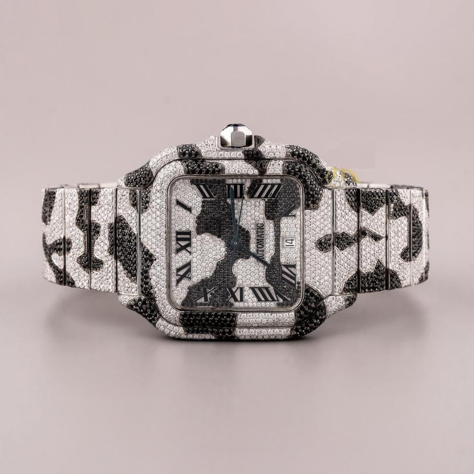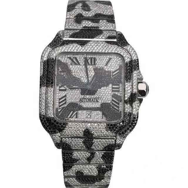 LUXURIOUS LOOKING Stainless Steel Diamond Wrist Watch Iced Out Moissanite Automatic Mechanical for Men