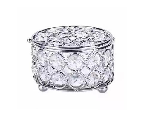 LUXURY CRYSTAL TRINKET BOX ROUND SHAPE MEDIUM SIZE SILVER FINISH JEWELRY BOXES for GIFT DECORATIVE TRINKET BOXS