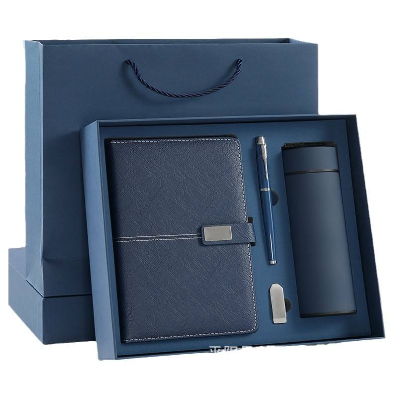 LX2024 A5 Notebook Gift Set Blue PU Leather Business Office Corporate Event Personalization Insulated Mug Wireless Binding