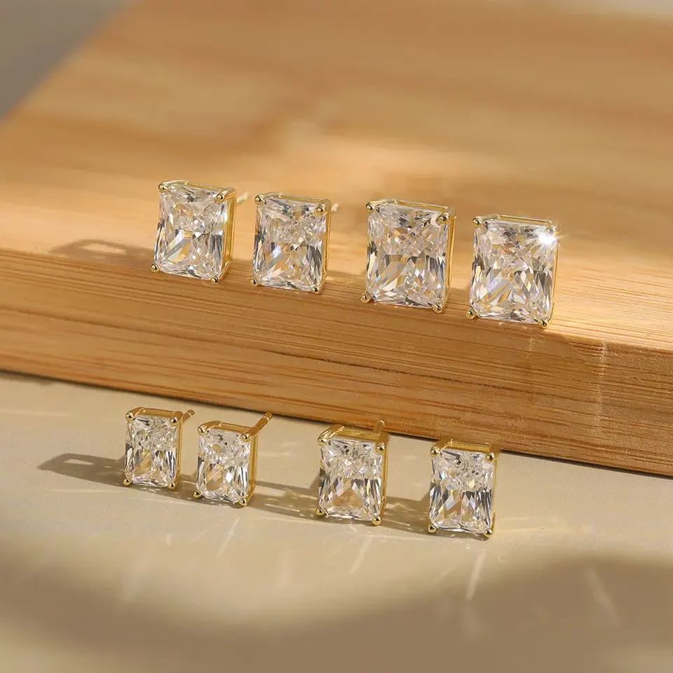 LZE Classic Simple Stud 14K Gold Plating 925 Sterling Silver 8A Premium Cubic Zirconia Stud Earrings for Women