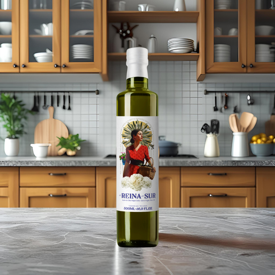 La Reina Del Sur 500mL Pure Olive Oil for Cooking and Frying Glass Bottle Plant-Based Product