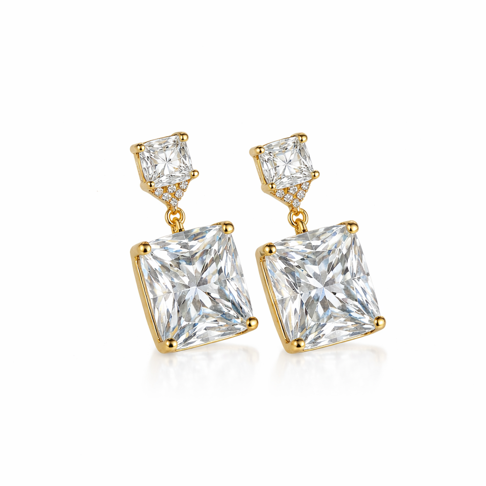 Product Name:14K Gold Dual Stone Radiant Drop Stud Earrings