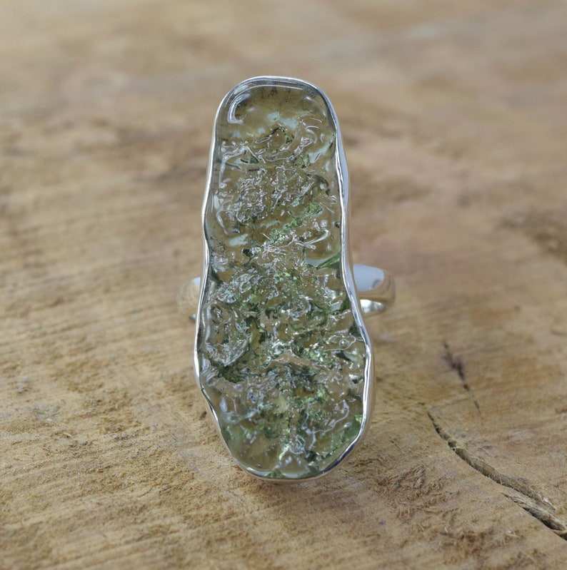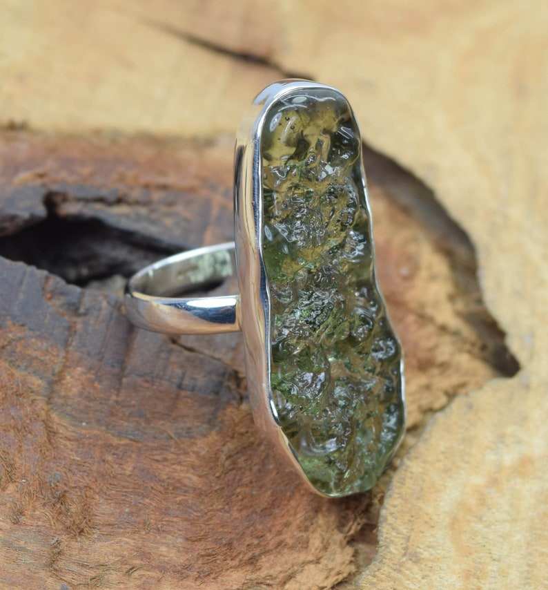 Lab-Created Green Moldavite Gemstone Ring in 925 Sterling Silver for Women's Wedding and Elegant Handmade Jewelry Lovers