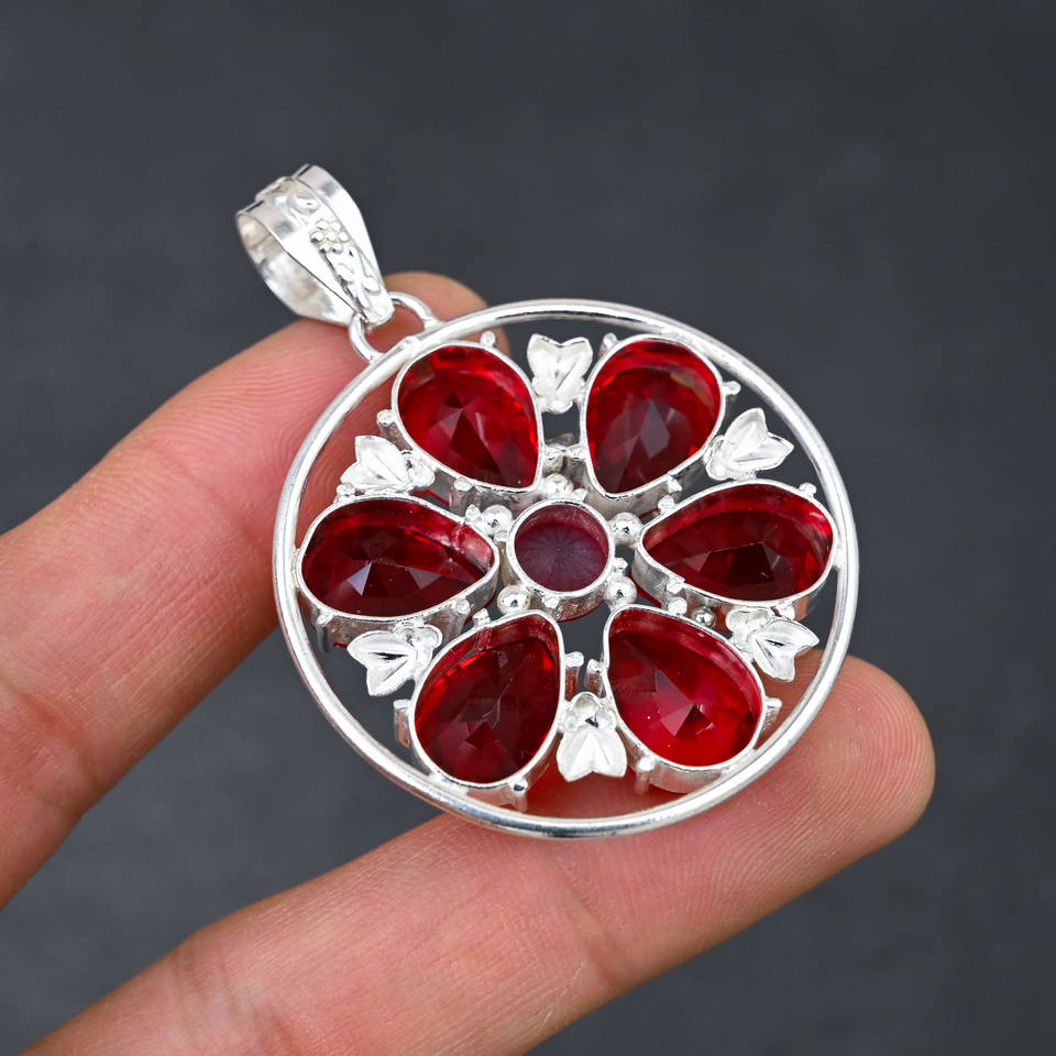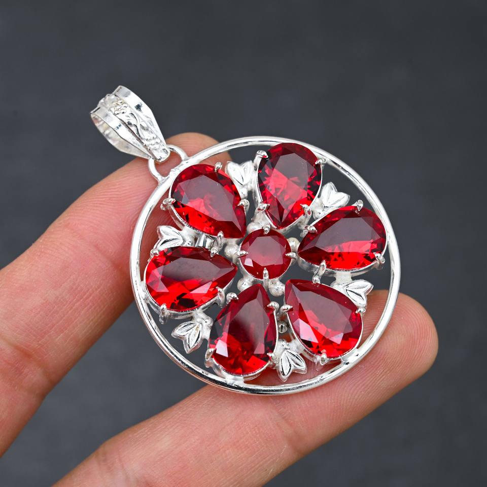 Lab Created Red Garnet Gemstone Pendant Handmade 925 Silver Plated Designer Jewelry Gift for Women