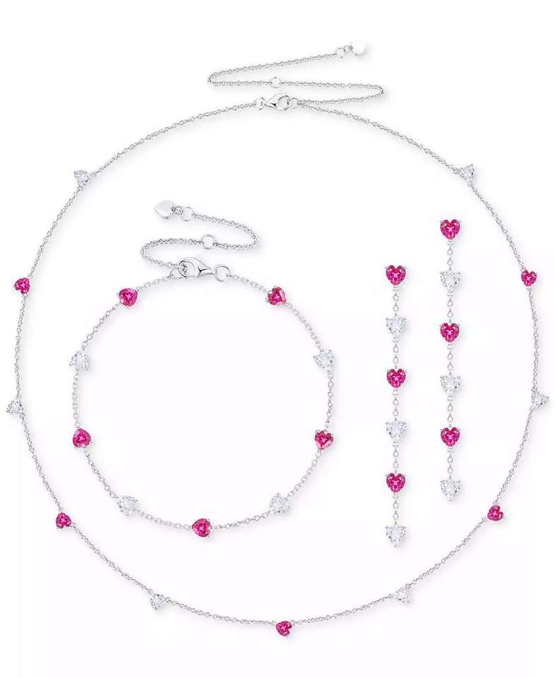 Lab Created Ruby (5-1/2 ct. t.w.) & White Sapphire (5-1/2 ct. t.w.) Heart Necklace, Bracelet & Earrings in Sterling Silver | Mac
