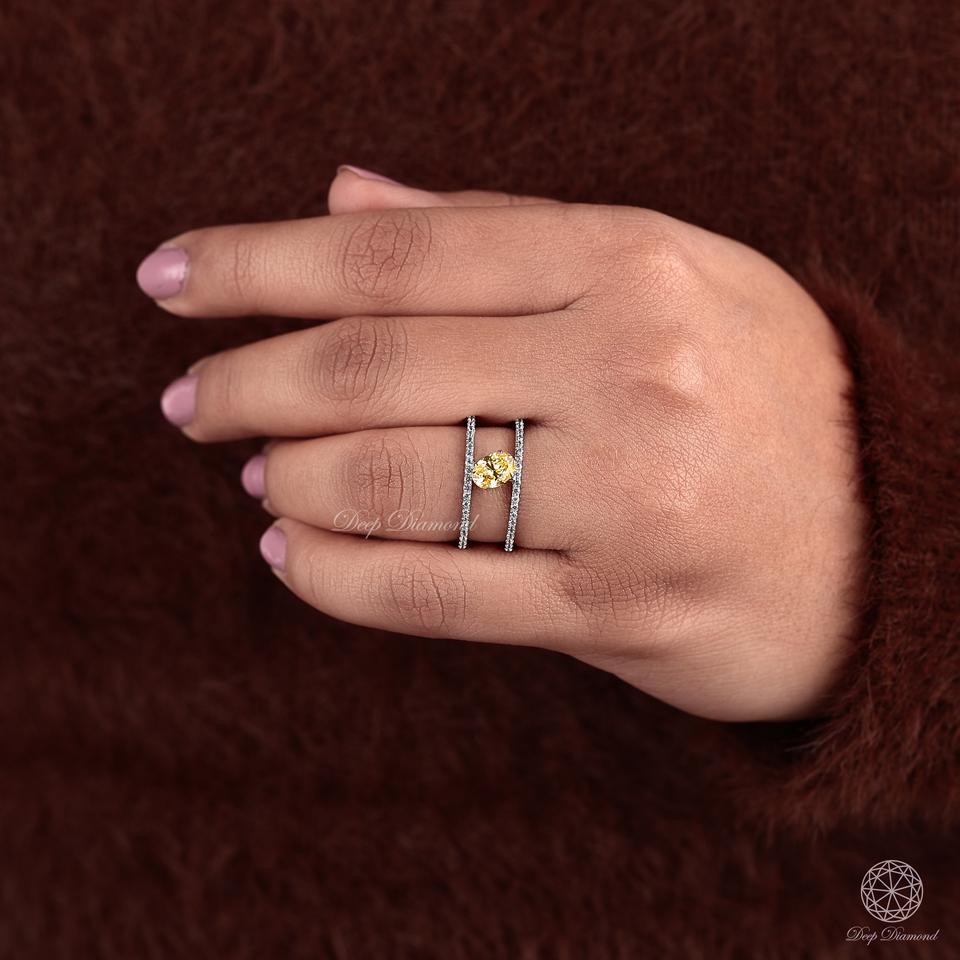Keyword:Oval Cuff Yellow Color Lab Grown Diamond Engagement ring