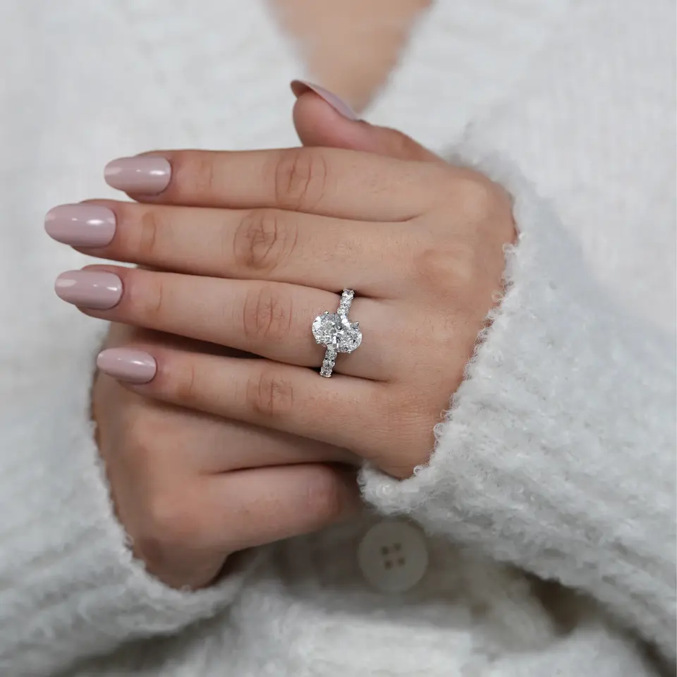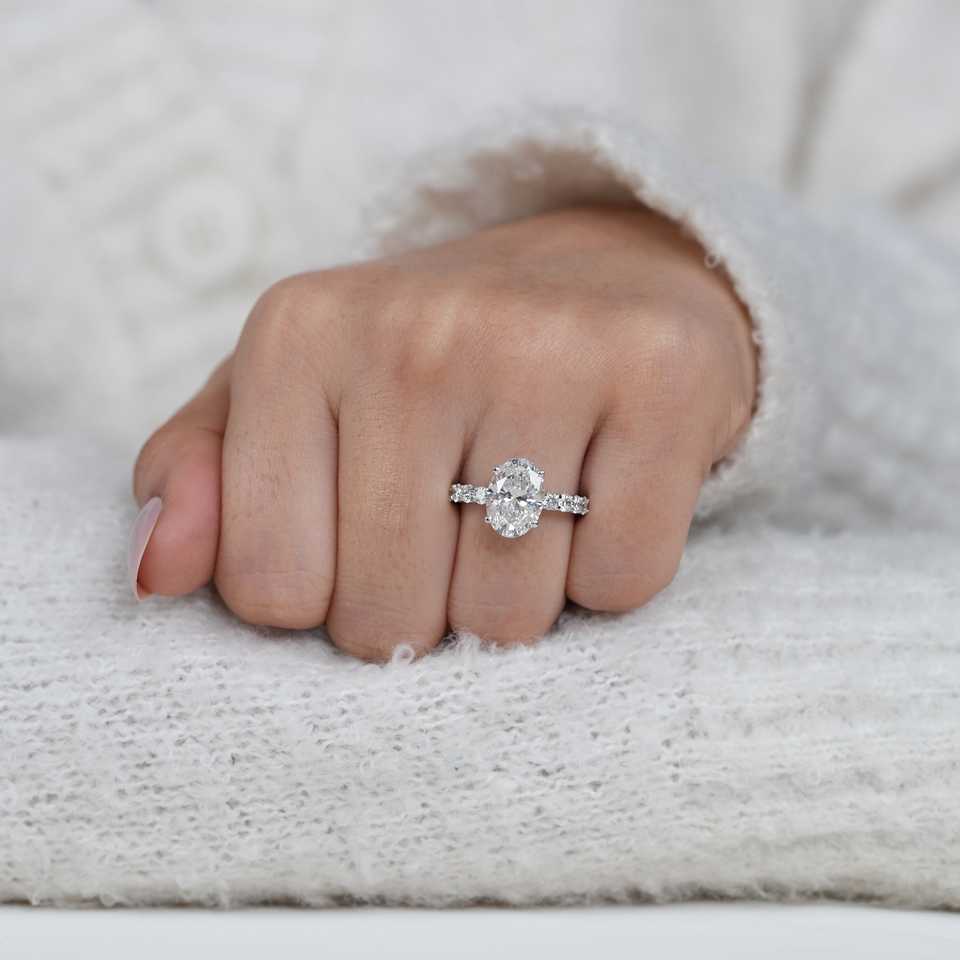 Lab Diamond Solitaire Engagement Ring Vintage Style Oval Band