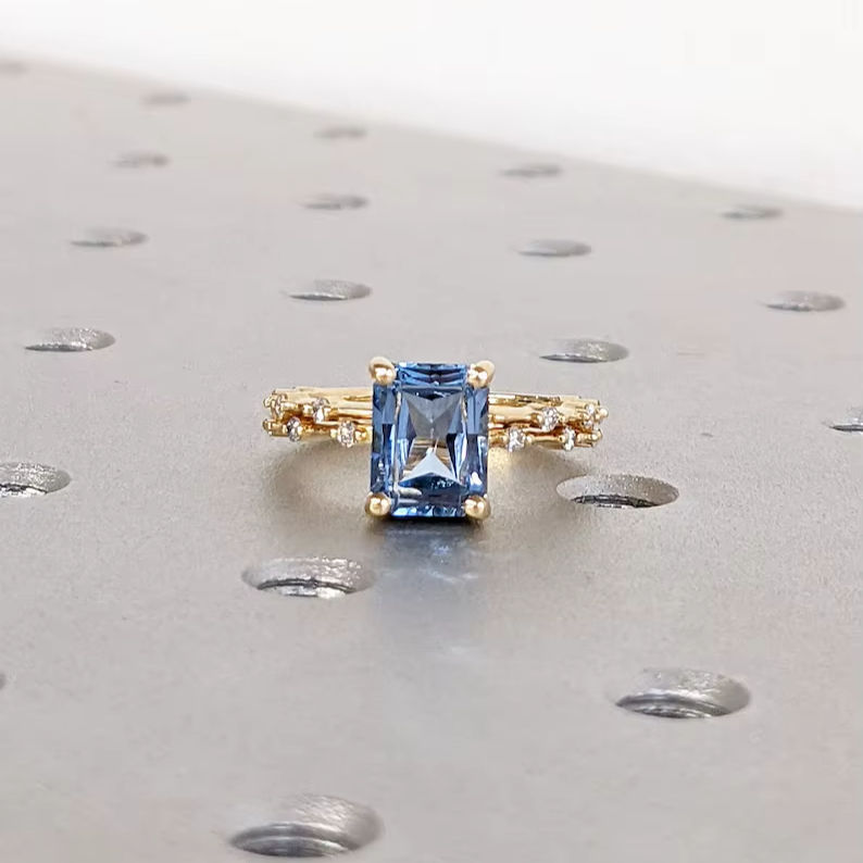Lab Grown Aquamarine IGI Certified Wedding Anniversary Festival Ring Set 925 Sterling Silver 14k Gold Plated March Birthstone