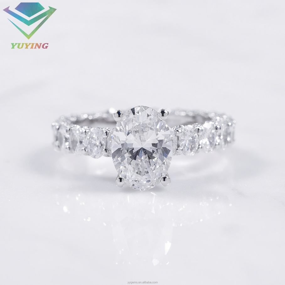Lab Grown D Color CVD Diamond with 14k Gold Plated Women Wedding Engagement 925 Silver Oval Cut Band Ring