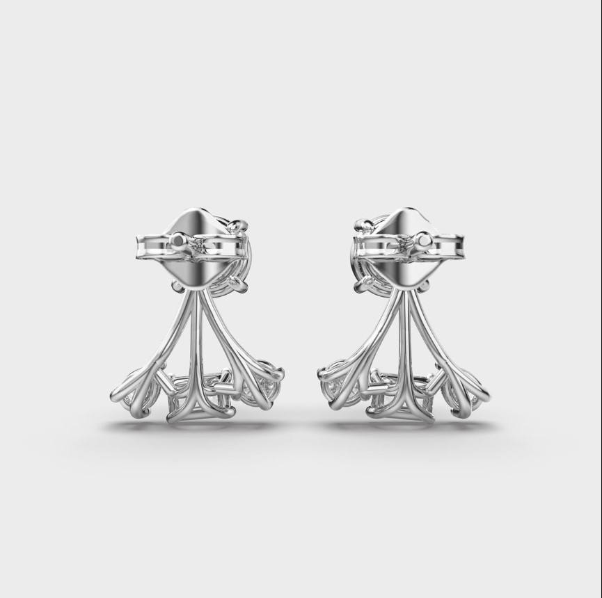 Lab Grown Diamond Designer Drop Earrings with Round Baguette Accents IGI Certified Solid 925 Sterling Silver Anniversary Gift