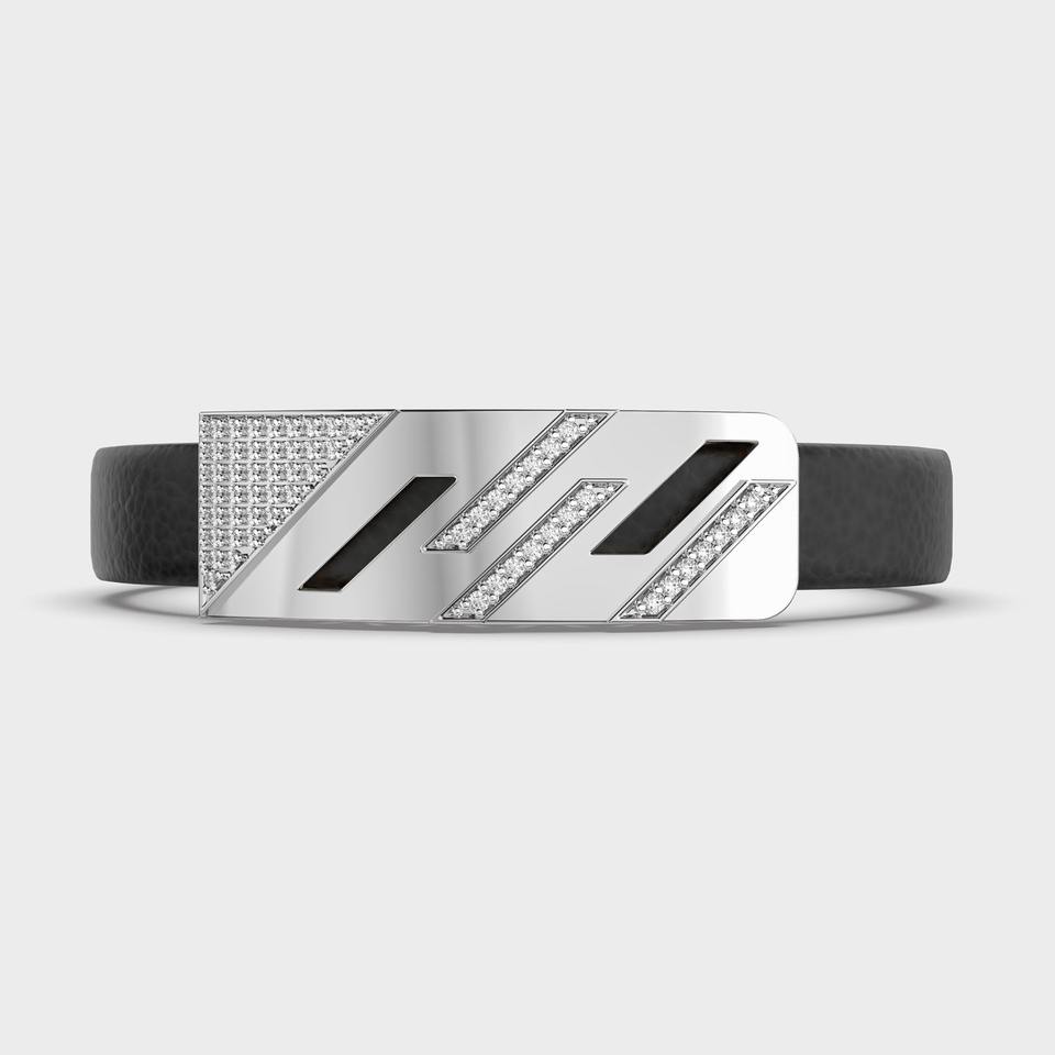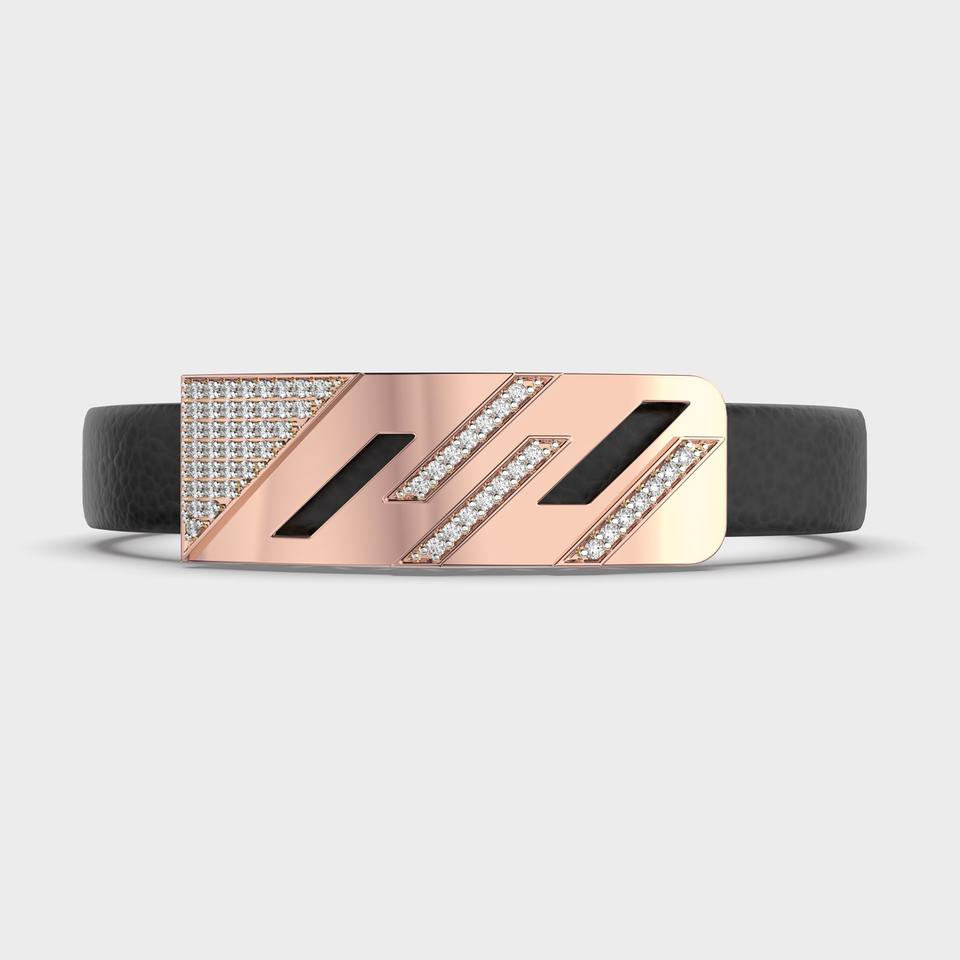 Lab Grown Diamond Geometric Plate Mens Leather Bracelet in 9K Rose/Yellow/White Gold Luxury Rhodium Plated IGI Certified