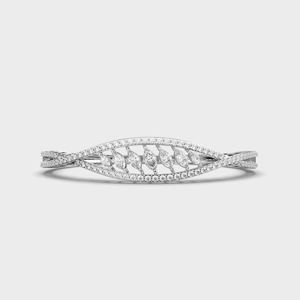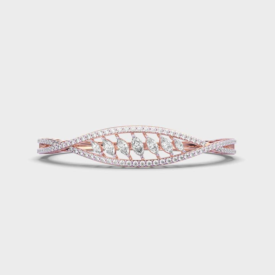 Lab Grown Diamond Marquise Leaf Pavé Bangle Bracelet in 9KT Yellow / White / Rose Gold