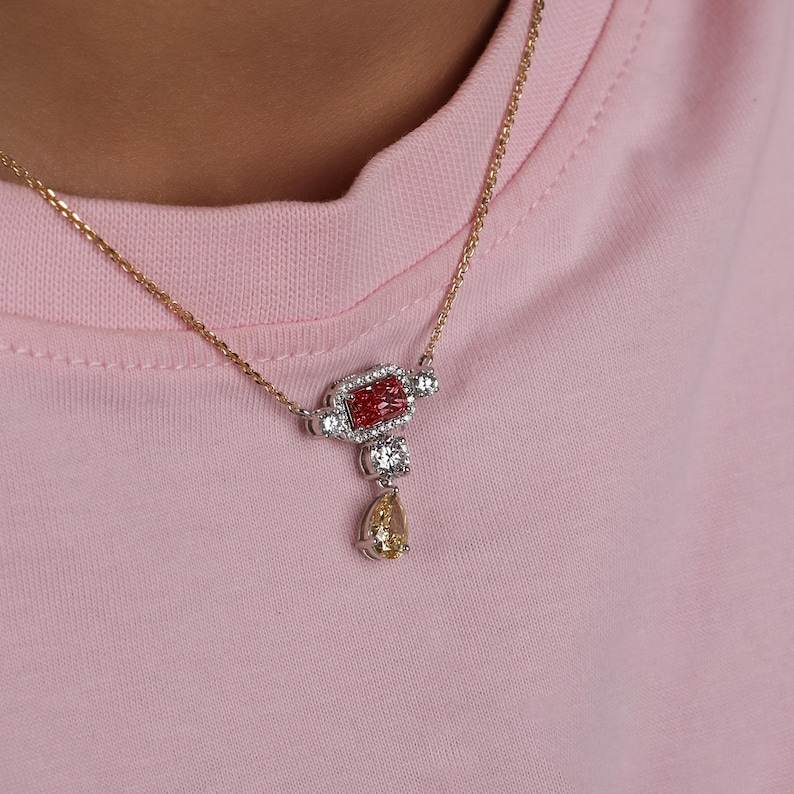 Lab Grown Diamond Pendant Necklace Three Mixed Cuts 10k Solid Gold Classic Ethical Trio Necklace Main Stone Moissanite Jewelry