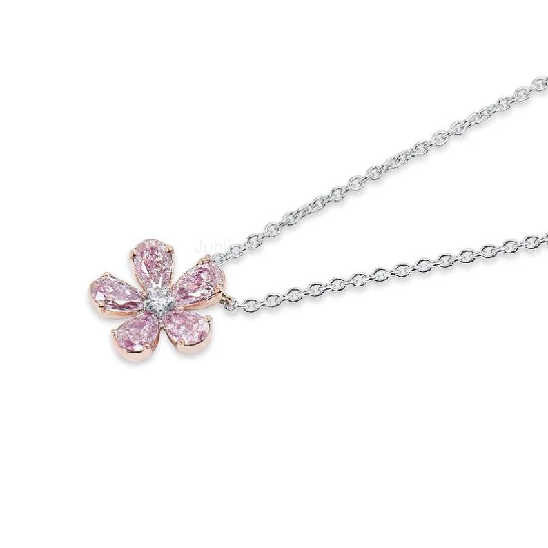 Lab Grown Diamond Pendant in 14K White Gold IGI Certified Pink Lab Grown Pear Cut F Color VS1 Clarity for Jewelry