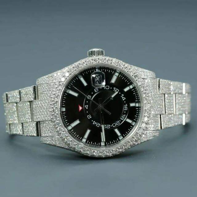 Lab Grown Diamond Stainless Steel Luxury Watch Fully Iced Retro Vintage Style Quartz Movement Limited Edition Analog Dial