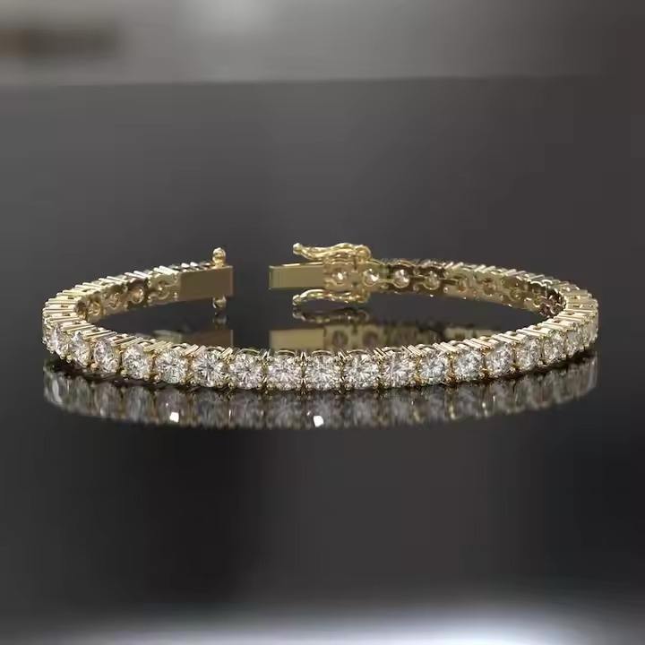 Lab Grown Diamond Tennis Bracelet for Women 14k Solid Gold round Diamond Wedding Bracelet Diamond Bracelets & Bangles