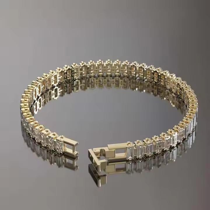 Lab Grown Diamond Tennis Bracelet for Women Men 14K Solid Gold Baguette Diamond Bracelet Baguette Diamond Bracelet Bangle