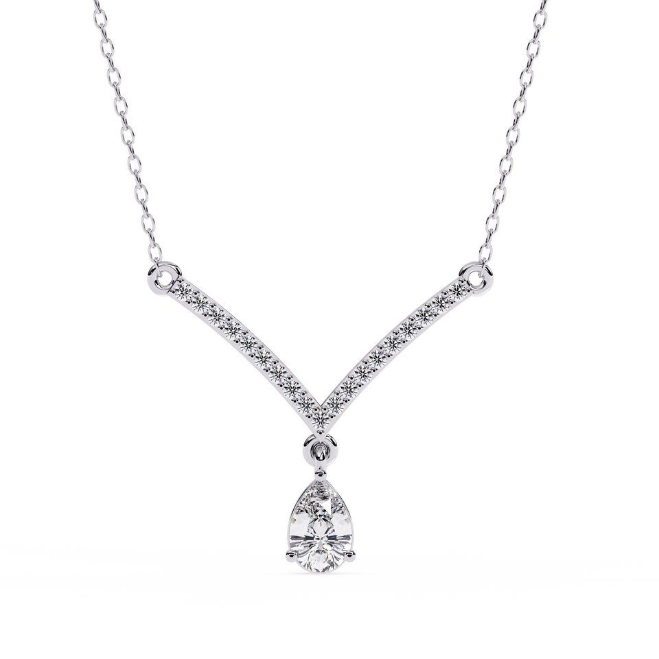 Lab Grown Diamond V-Shaped 14K Gold Plated Sterling Silver Round Brilliant Cut IGI Certified Anniversary Pendant Necklace