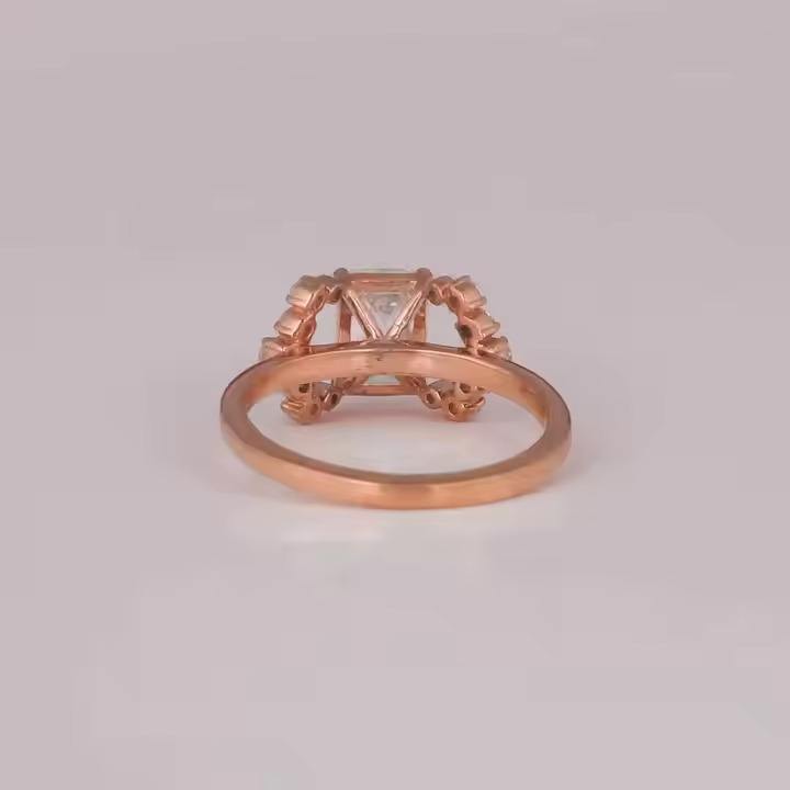 Lab Grown Emerald Cut Diamond Ring 18K Rose Gold Plated Stylish Engagement & Wedding Ring for Women