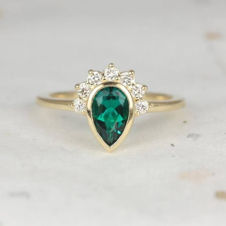 Lab Grown Emerald Women's Crown Ring with 14K Yellow Gold Handmade Pear Cut Gemstone IGI Certified Special Gift for Her Party